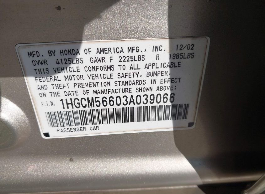 - VIN: 1HGCM56603A039066