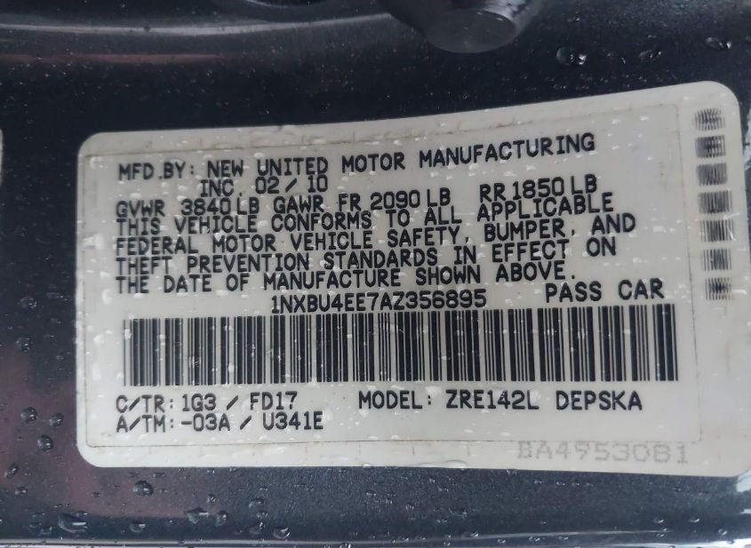 - VIN: 1NXBU4EE7AZ356895
