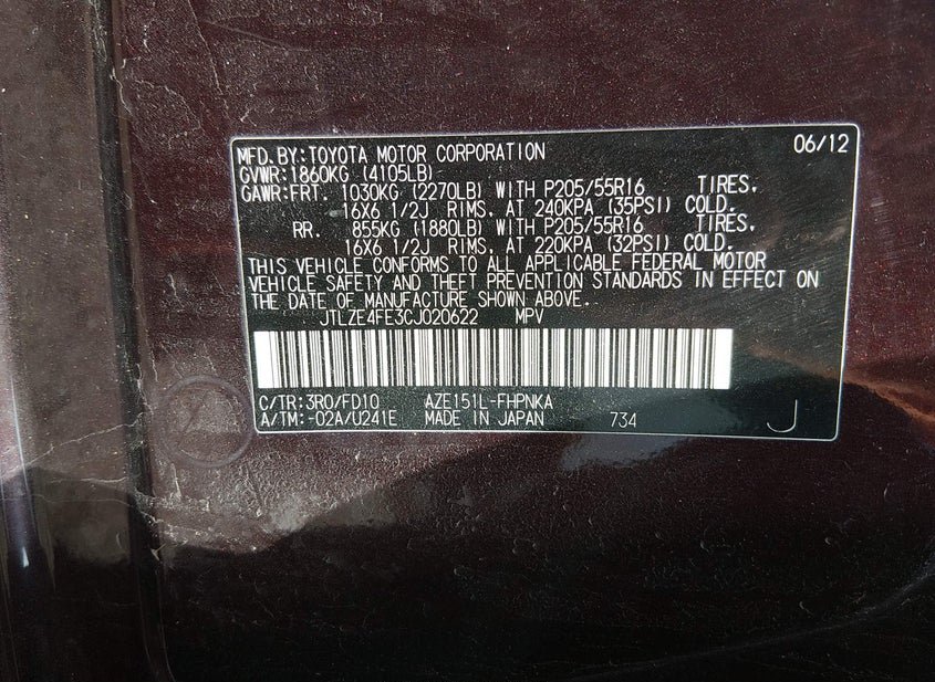 - VIN: JTLZE4FE3CJ020622