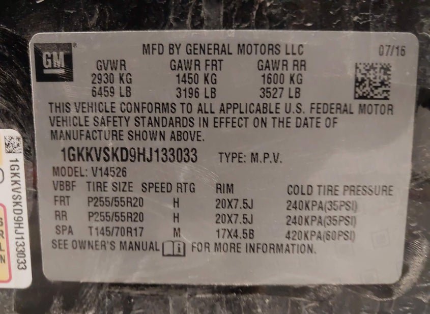 - VIN: 1GKKVSKD9HJ133033