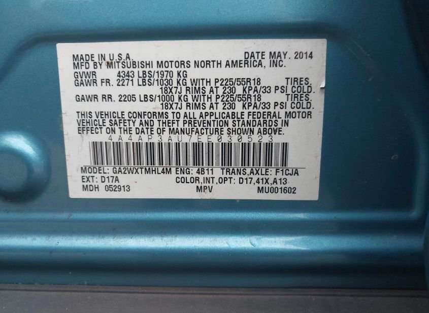 - VIN: 4A4AP3AU7EE030523