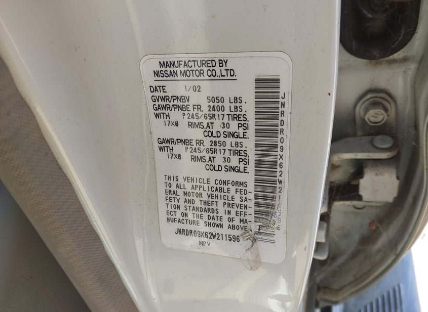 - VIN: JNRDR09X62W211596