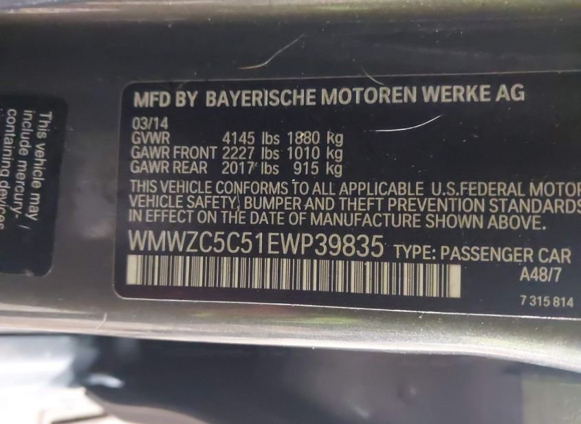 - VIN: WMWZC5C51EWP39835