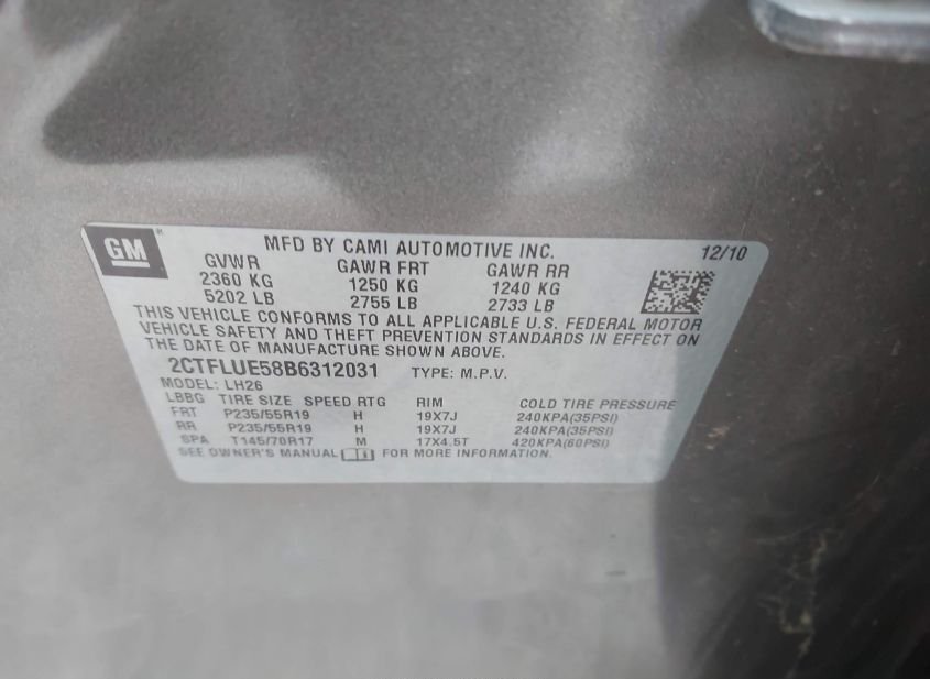 - VIN: 2CTFLUE58B6312031