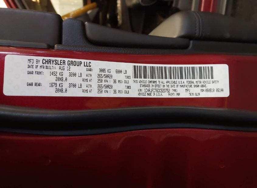 - VIN: 1C4RJFCT6DC523752