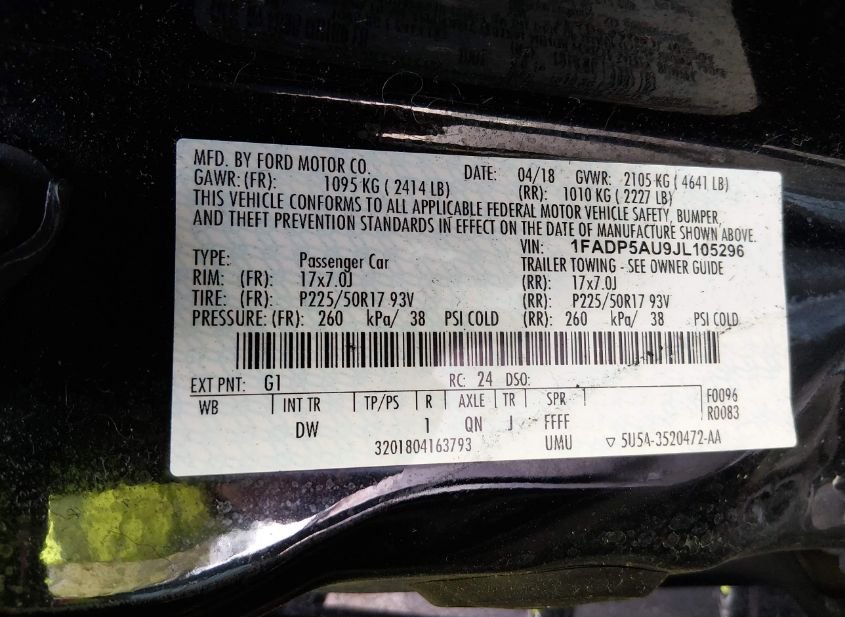 - VIN: 1FADP5AU9JL105296