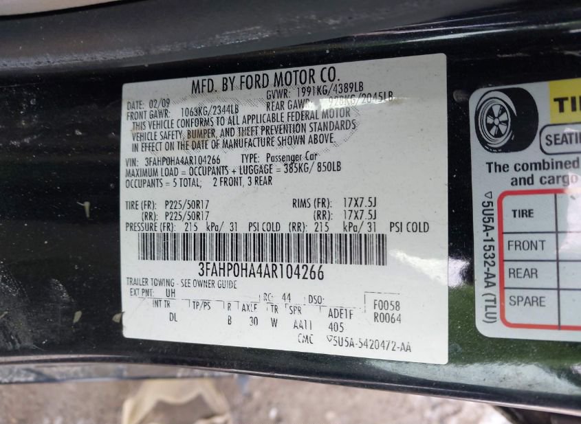 - VIN: 3FAHP0HA4AR104266