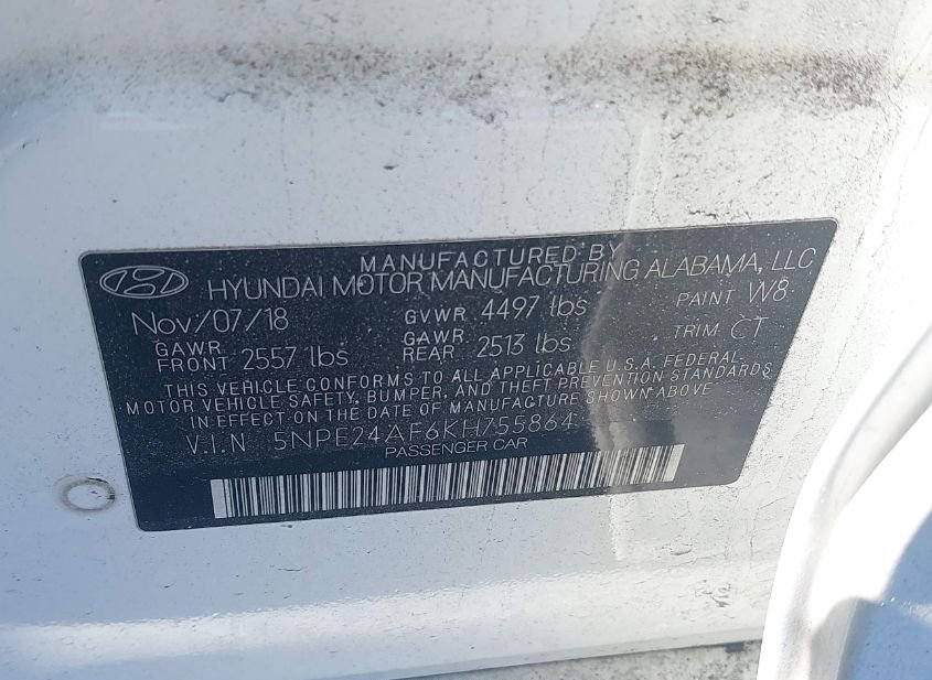 - VIN: 5NPE24AF6KH755864