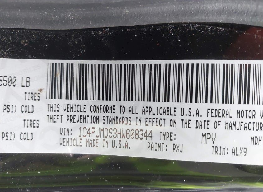 - VIN: 1C4PJMDS3HW608344