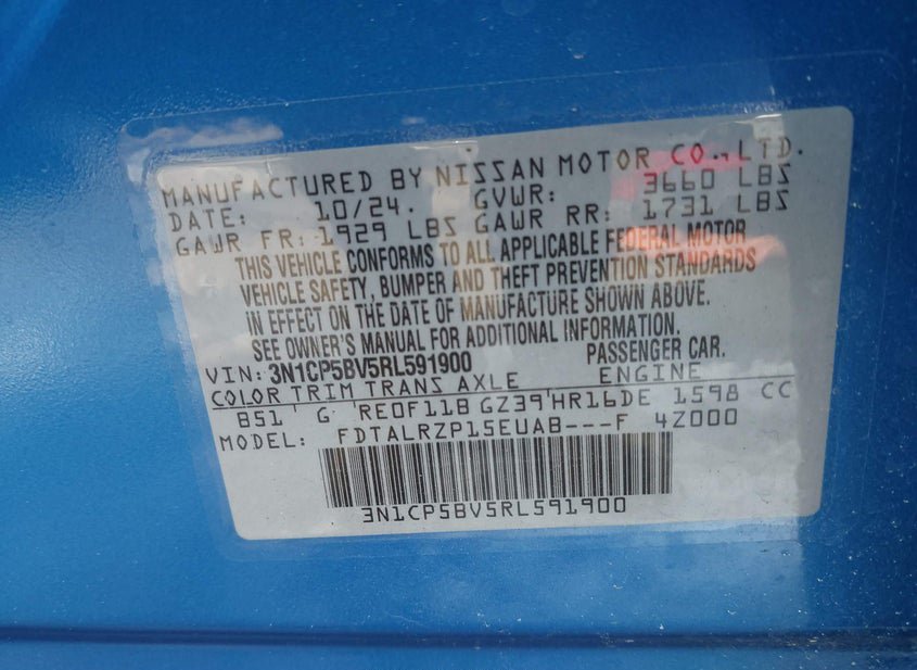 - VIN: 3N1CP5BV5RL591900