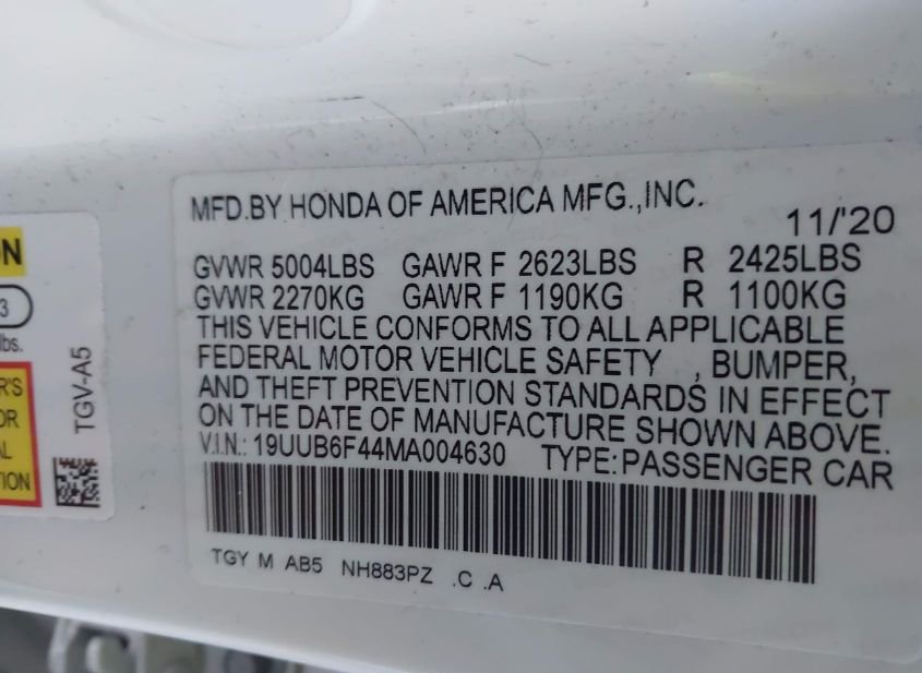 - VIN: 19UUB6F44MA004630
