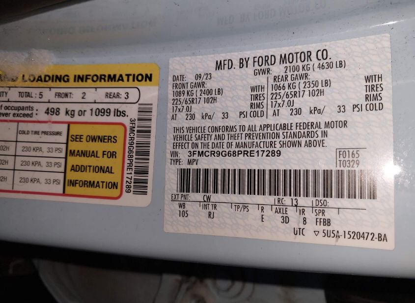 - VIN: 3FMCR9G68PRE17289