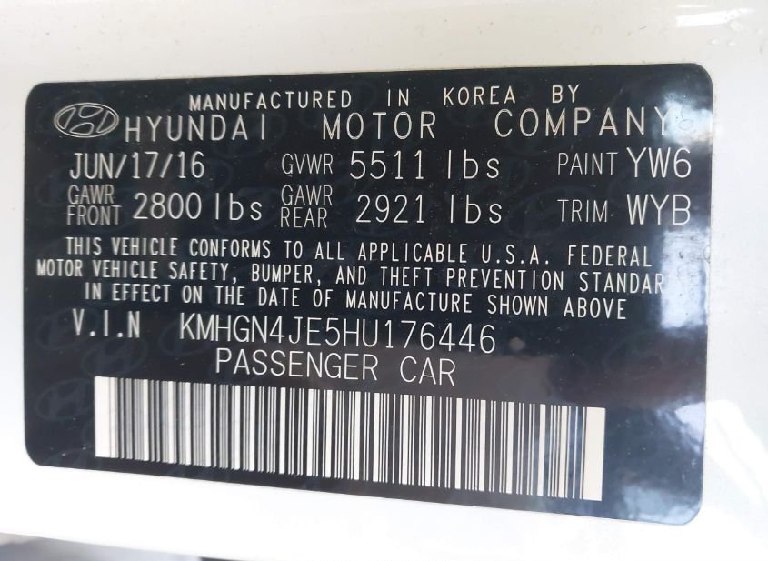- VIN: KMHGN4JE5HU176446