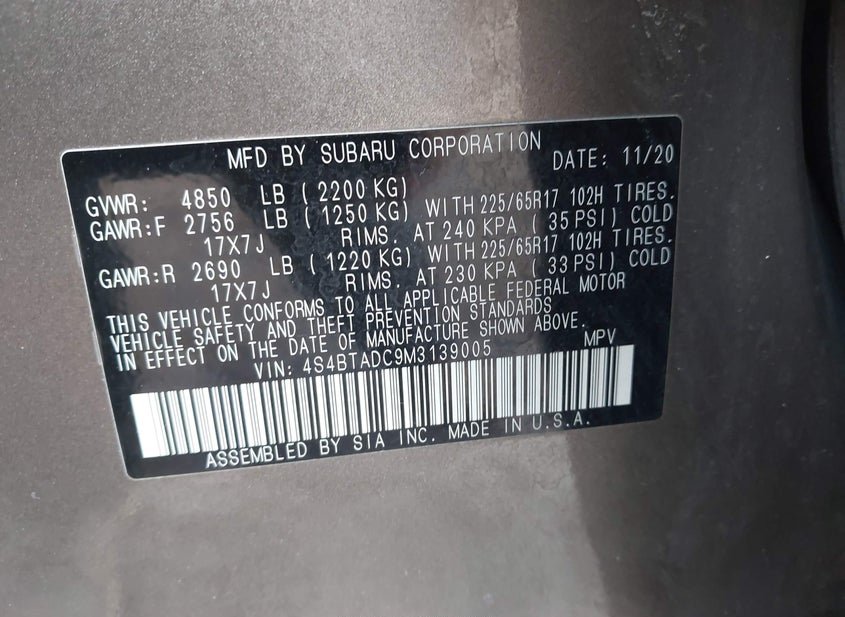 - VIN: 4S4BTADC9M3139005