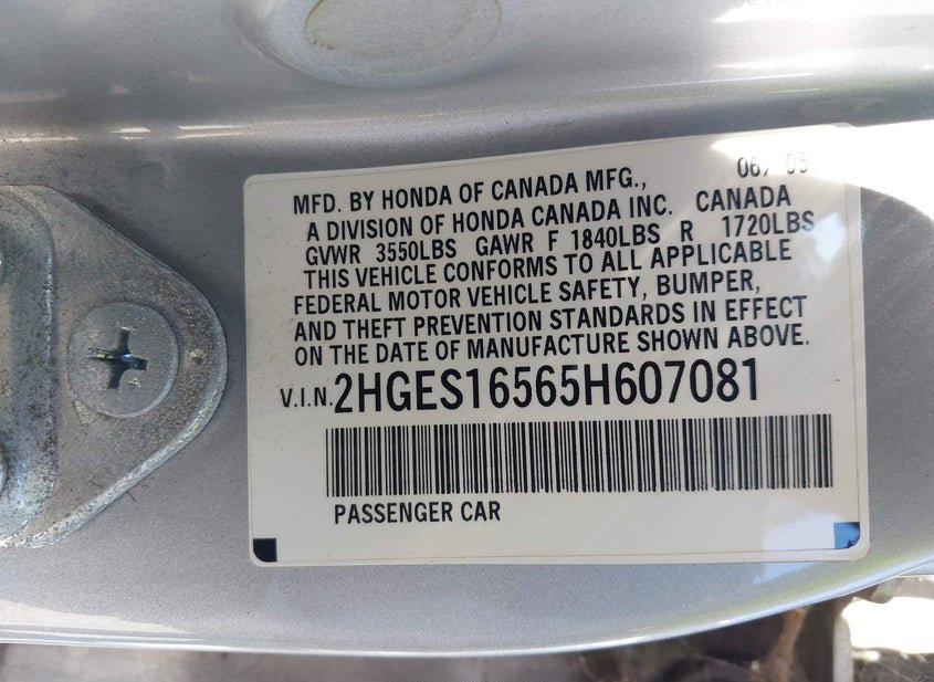 - VIN: 2HGES16565H607081