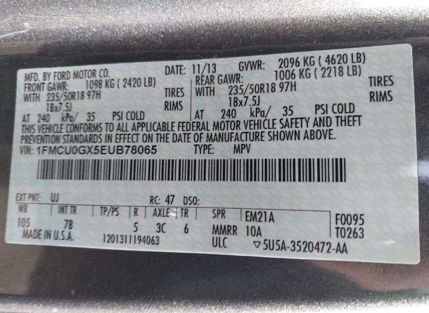- VIN: 1FMCU0GX5EUB78065
