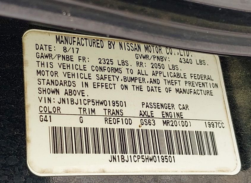 - VIN: JN1BJ1CP5HW019501