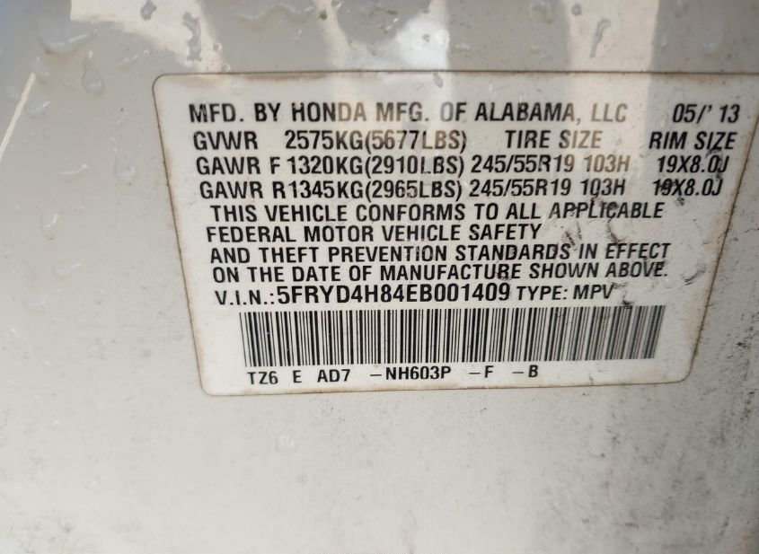 - VIN: 5FRYD4H84EB001409