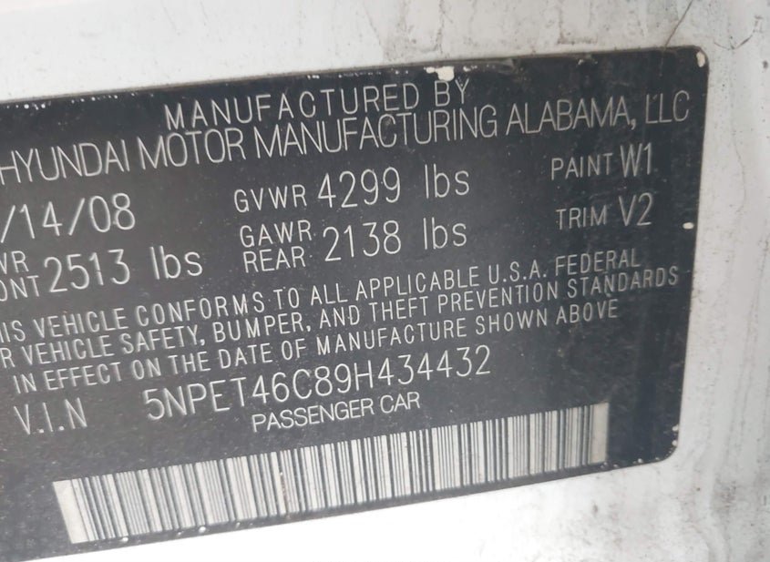 - VIN: 5NPET46C89H434432