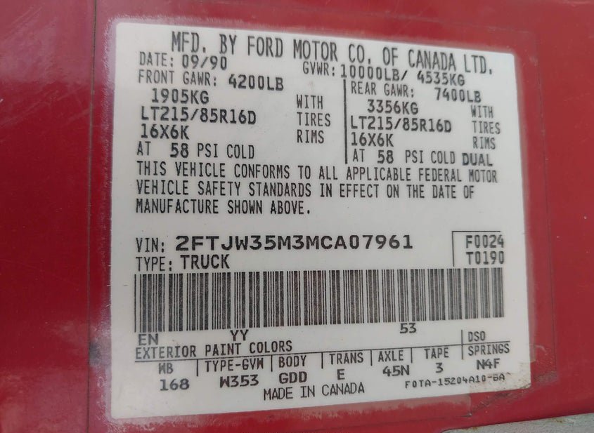 - VIN: 2FTJW35G8MCA43302