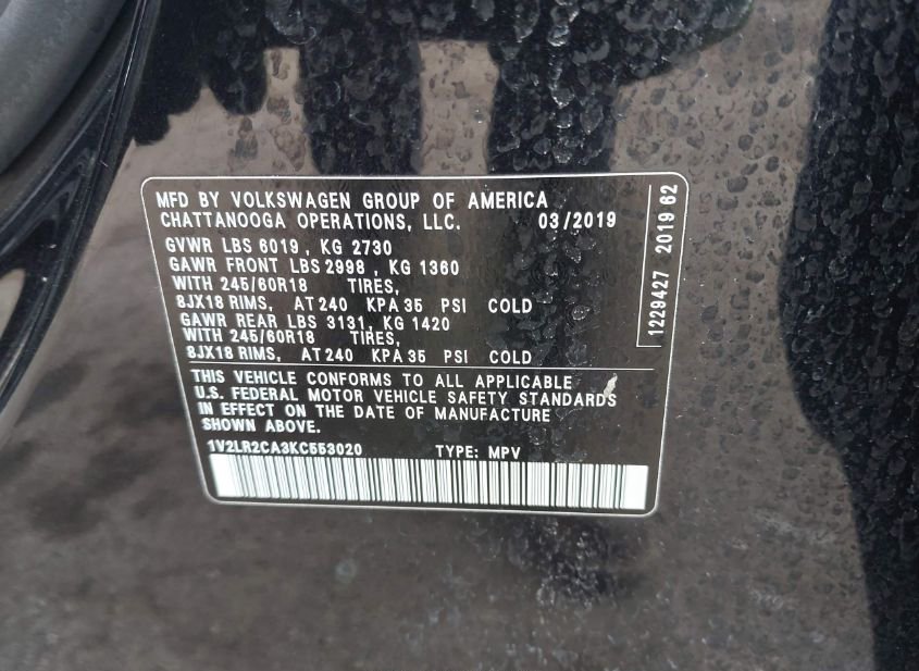 - VIN: 1V2LR2CA3KC553020
