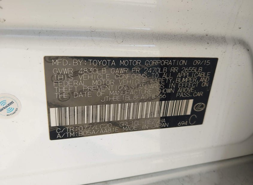 - VIN: JTHBE1BL8FA018366