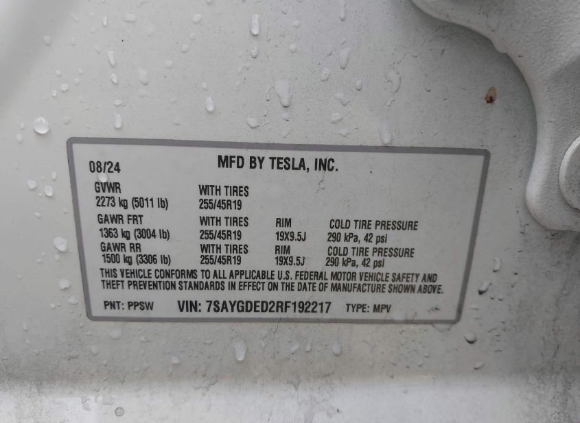 - Название лота: 2024 TESLA MODEL Y LONG RANGE SINGLE MOTOR REAR-WHEEL DRIVE/RWD