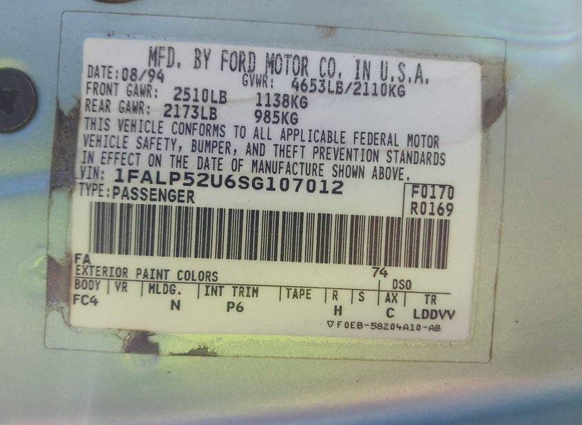 - VIN: 1FALP52U6SG107012