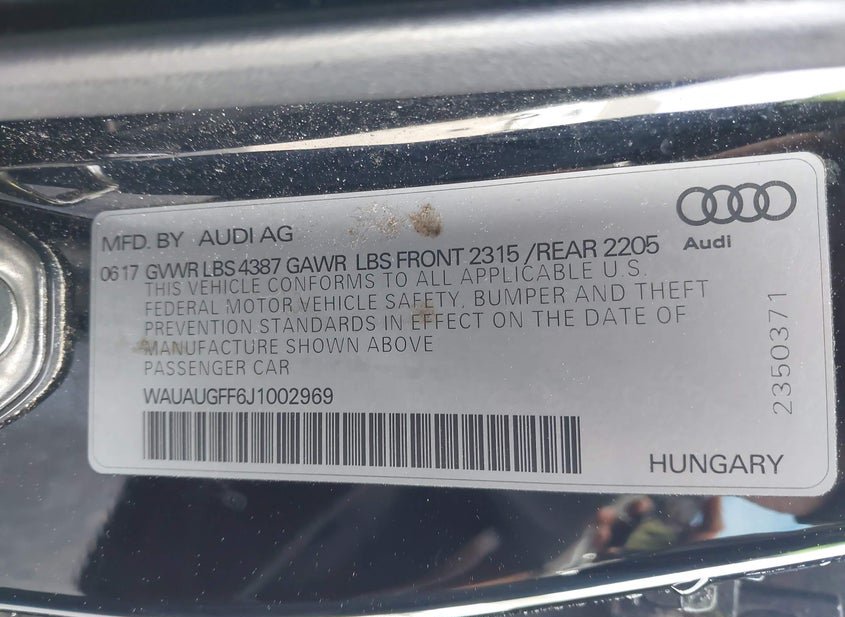 - VIN: WAUAUGFF6J1002969