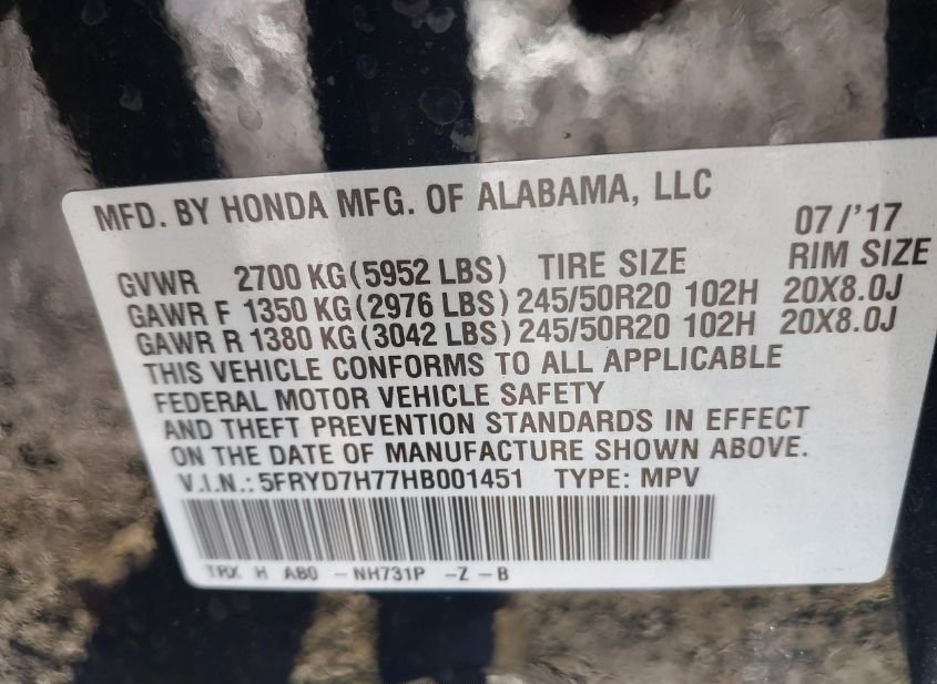 - VIN: 5FRYD7H77HB001451