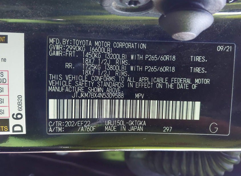 - VIN: JTJKM7BX4N5309588