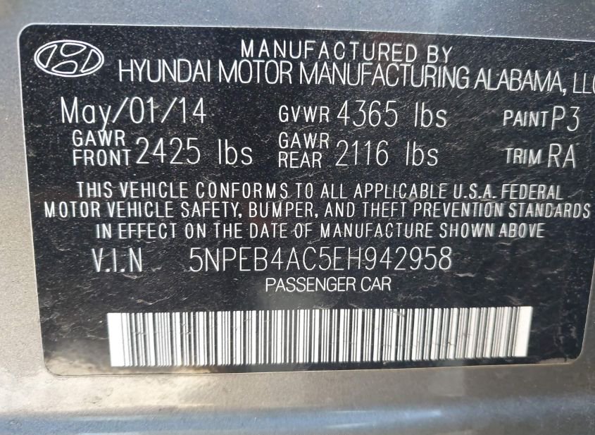 - VIN: 5NPEB4AC5EH942958