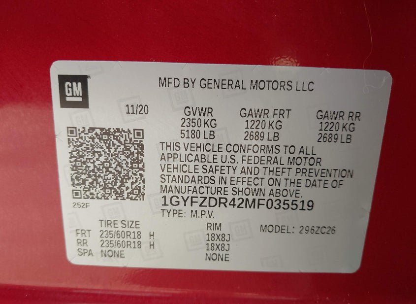 - VIN: 1GYFZDR42MF035519