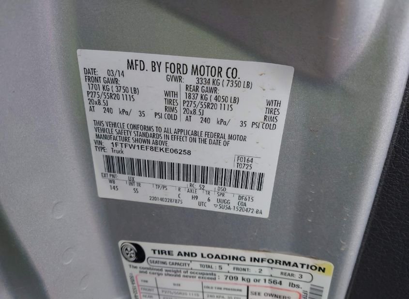 - VIN: 1FTFW1EF8EKE06258