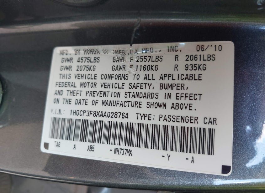 - VIN: 1HGCP3F8XAA028764