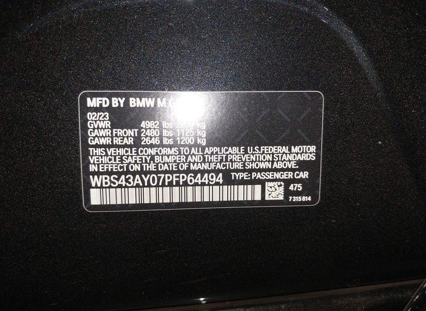 - VIN: WBS43AY07PFP64494
