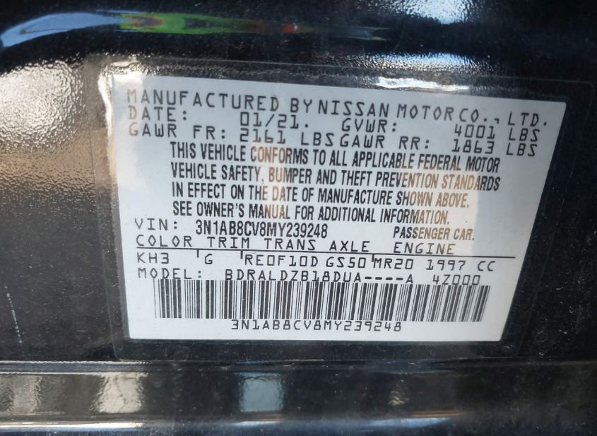 - VIN: 3N1AB8CV8MY239248