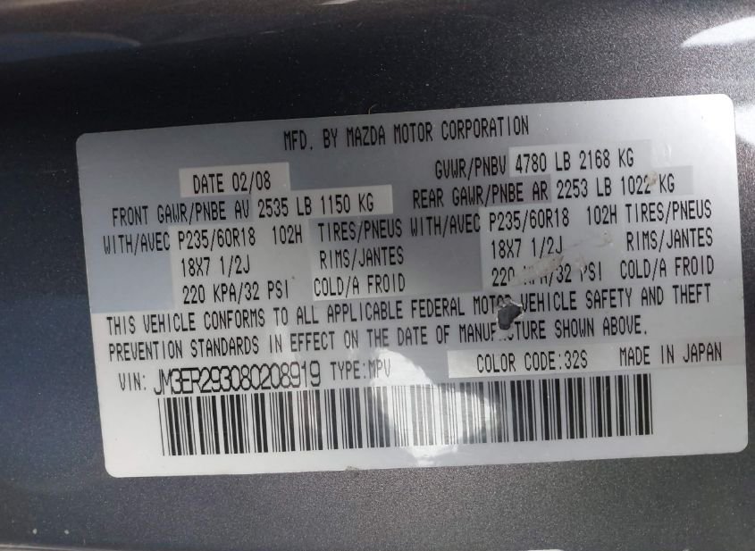 - Название лота: 2008 MAZDA CX-7 SPORT