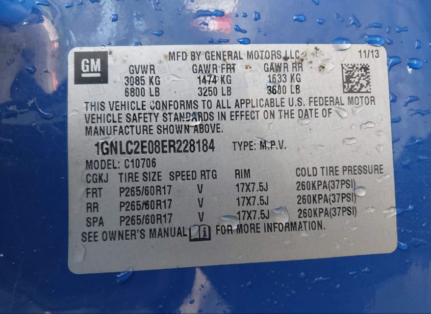 - VIN: 1GNLC2E08ER228184