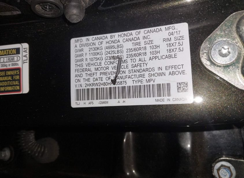 - VIN: 2HKRW2H80HH635875