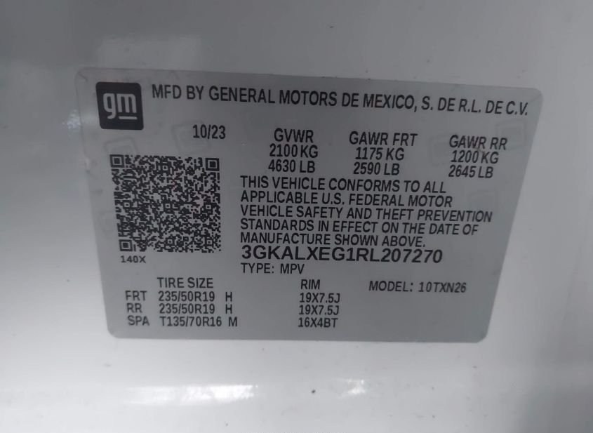 - VIN: 3GKALXEG1RL207270