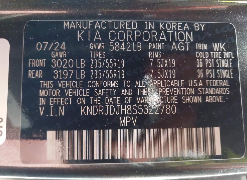- VIN: KNDRJDJH8S5322780