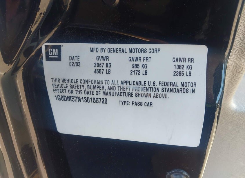 - VIN: 1G6DM57N130155720