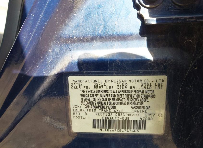 - VIN: 3N1AB6APXBL717608