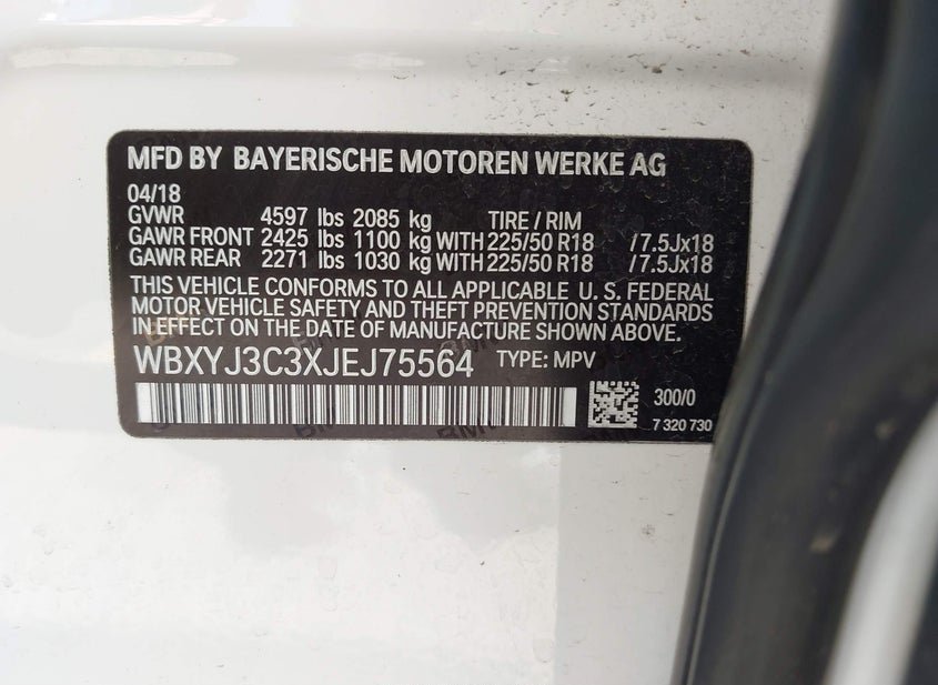 - VIN: WBXYJ3C3XJEJ75564