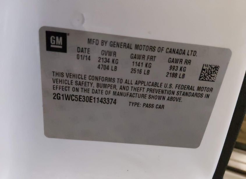 - VIN: 2G1WC5E30E1143374