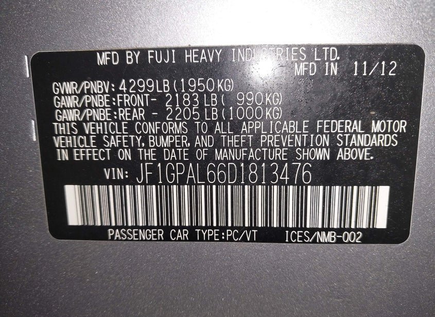 - VIN: JF1GPAL66D1813476