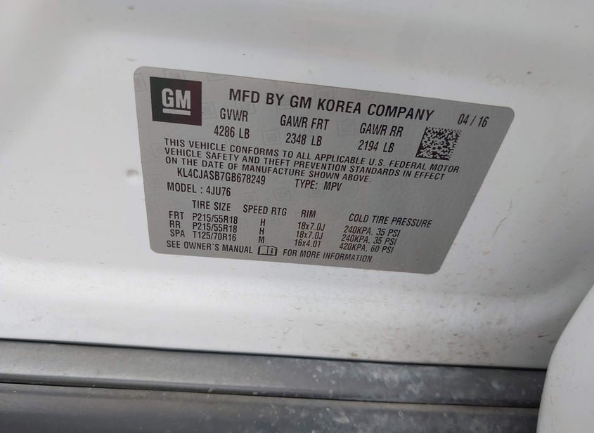 - VIN: KL4CJASB7GB678249