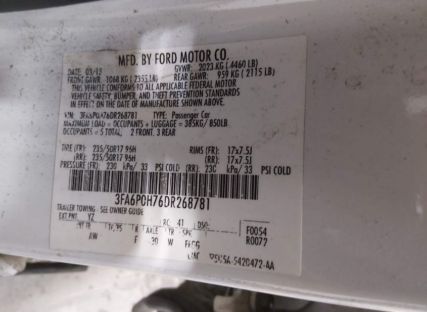 - VIN: 3FA6P0H76DR268781