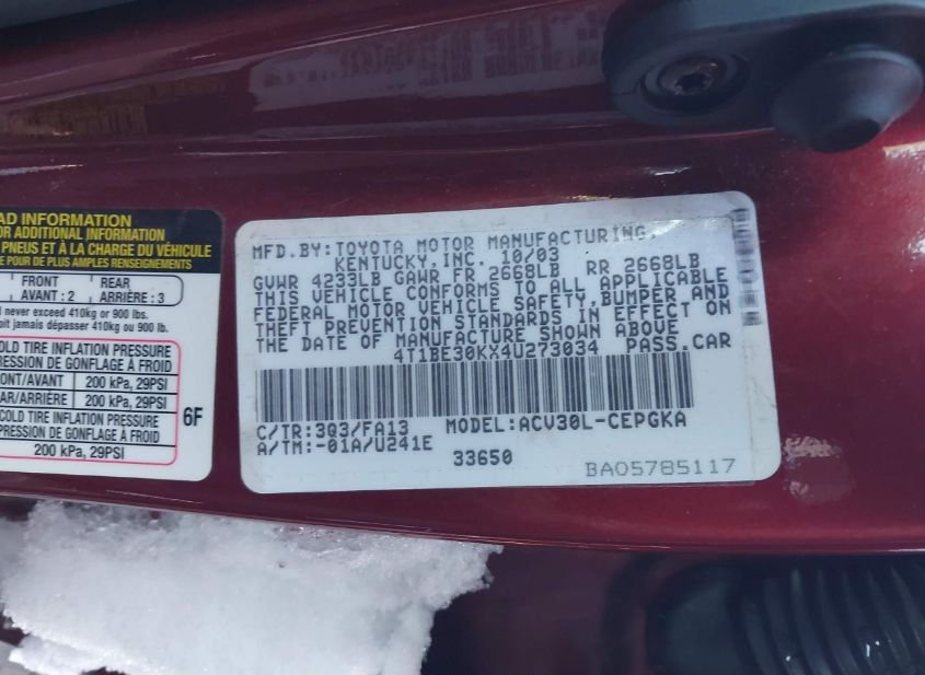 - Название лота: 2004 TOYOTA CAMRY XLE